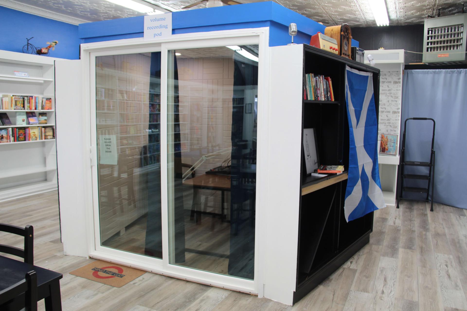 The space offers a podcast studio.