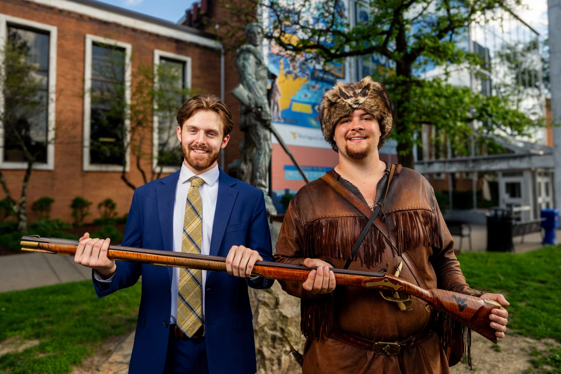 MORGANTOWN, W.Va. — Continuing a West Virginia University tradition, Reese Allen officially began his duties as the 72nd Mountaineer mascot Friday (April 17) during a symbolic rifle passing ceremony at the Mountainlair.