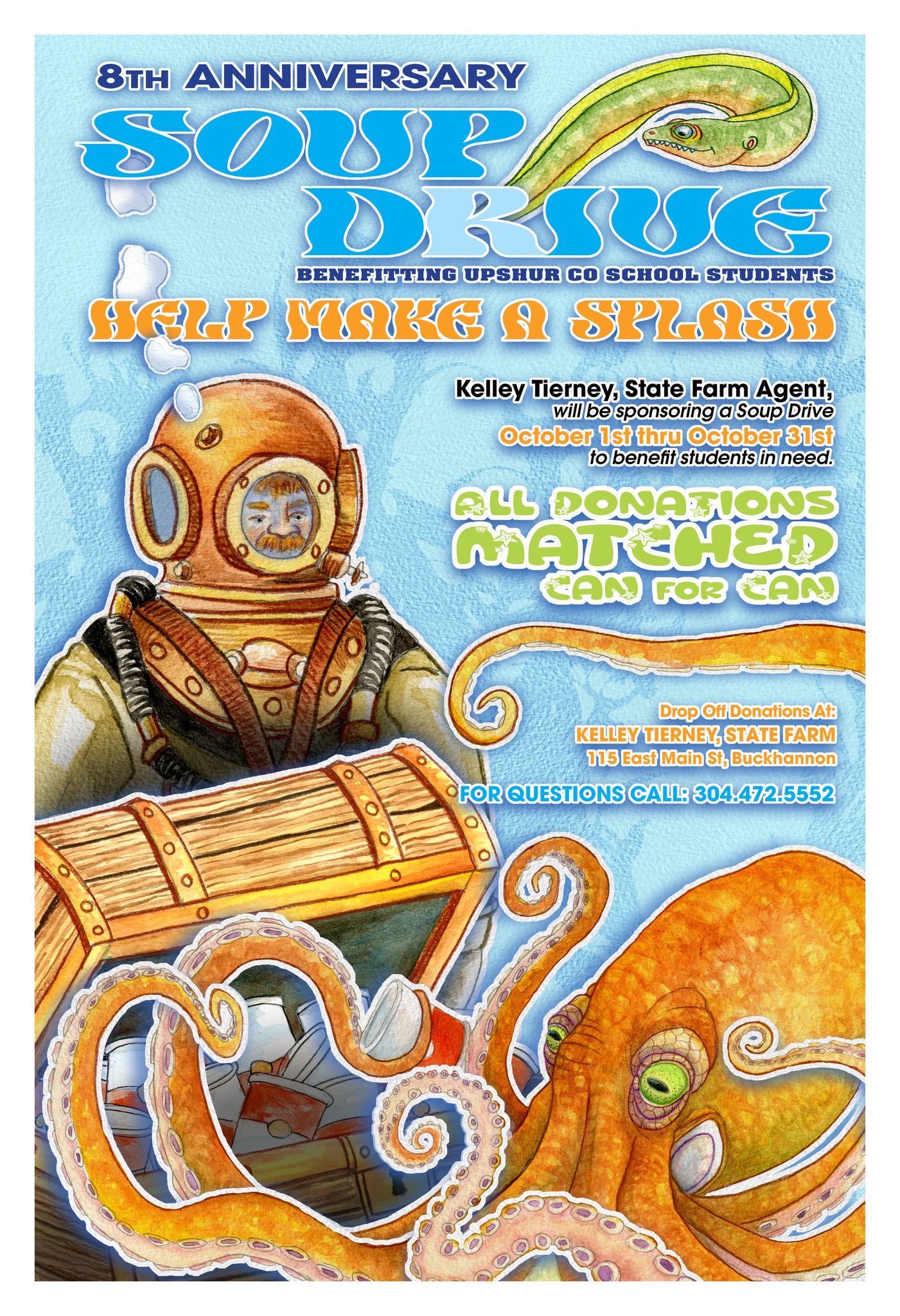 It’s that time of year again: local State Farm agent Kelley Tierney is rallying the Buckhannon community to fill shelves — and soup bowls — for local students in need.
