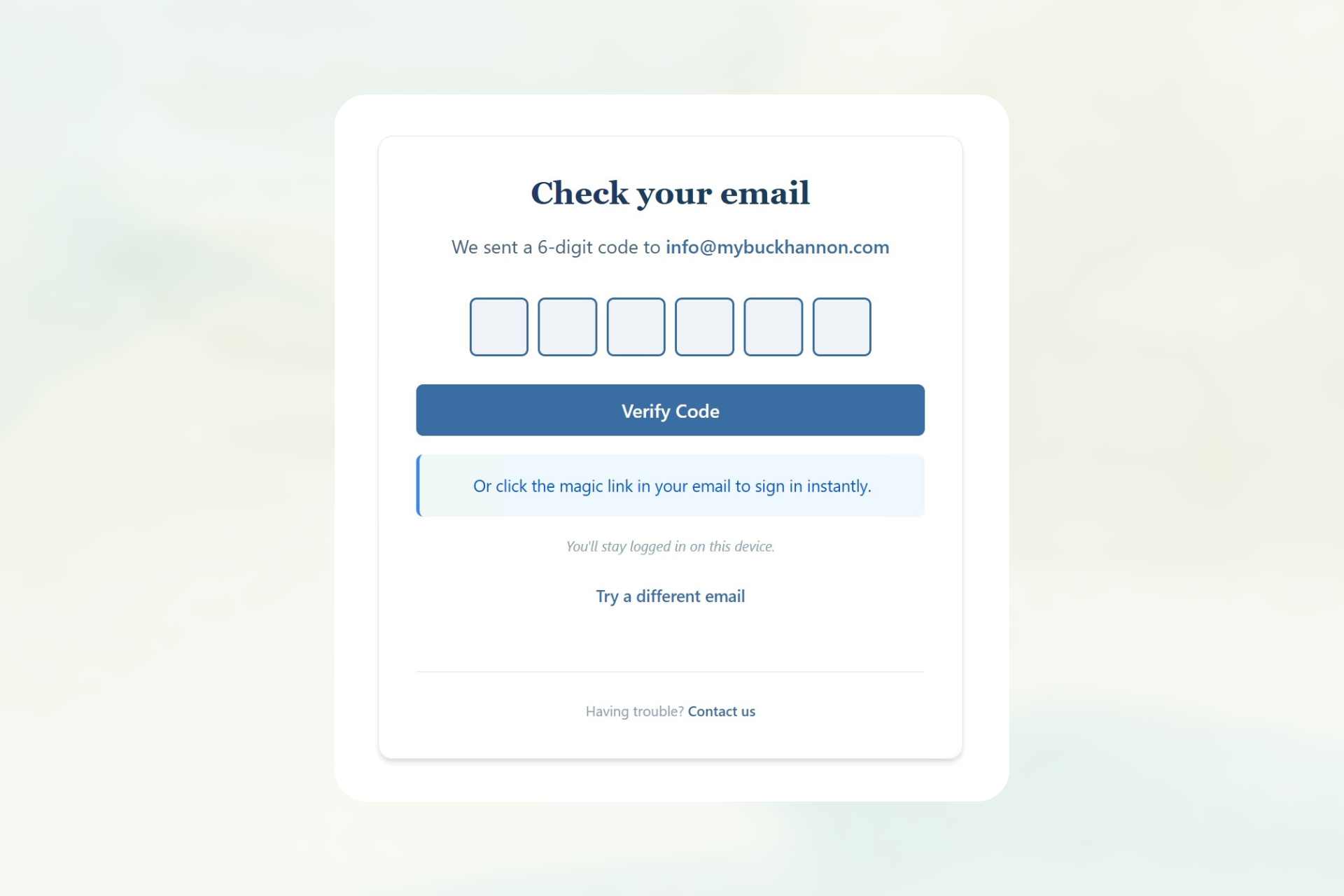 We use a code-based ‘magic link’ login system instead of passwords. Here’s how it works: