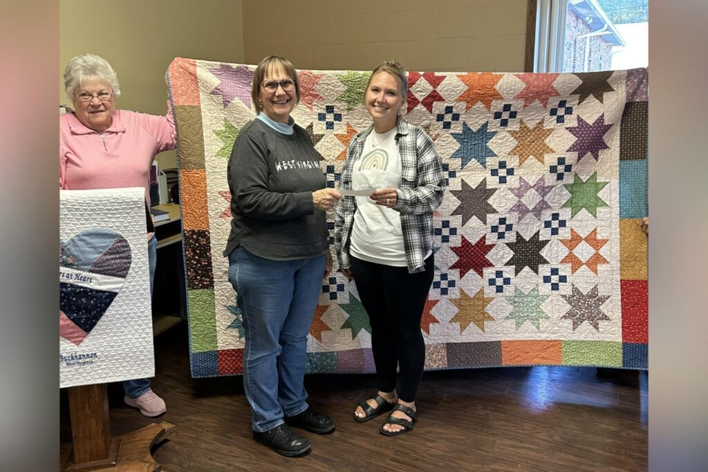Rev. Lowther is the pastor at the South Buckhannon Mission Church in Buckhannon. The quilt guild raised $2000 for the Graciously Giving Through Christ Foster Closet. Kelsey Metz, Founder/Organizer for the Foster Closet, attended the meeting to draw the winning name for the quilt and to receive the check from the Quilters at Heart Quilt Guild.