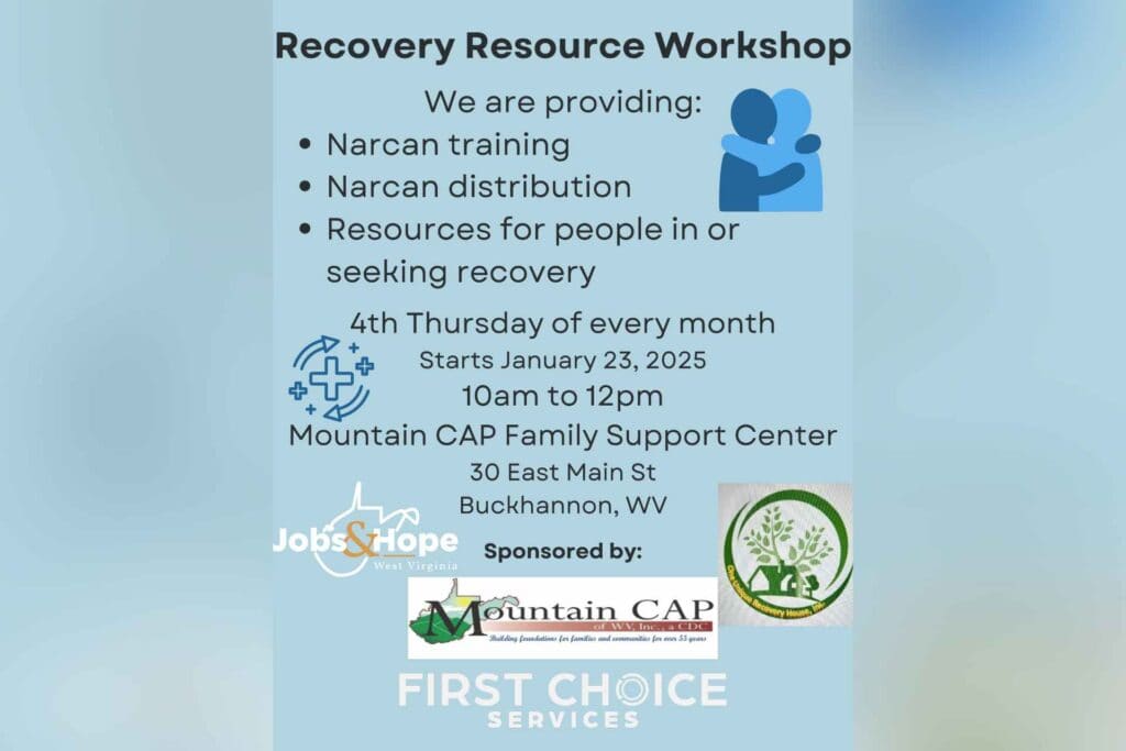 BUCKHANNON — The Mountain CAP Family Support Center, in collaboration with Our House Recovery Center, Jobs & Hope and First Choice Services, will be hosting a recovery resource workshop at 39 East Main Street in Buckhannon.