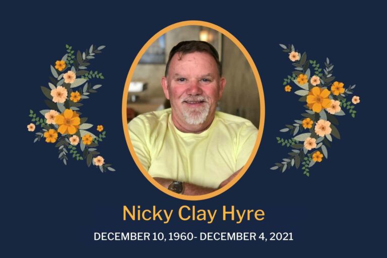 Nicky Clay Hyre (Nick), 60, of Buckhannon, WV, died Saturday, December 4, 2021, at Camden-Clark Hospital in Parkersburg, WV. He was born December 10, 1960,