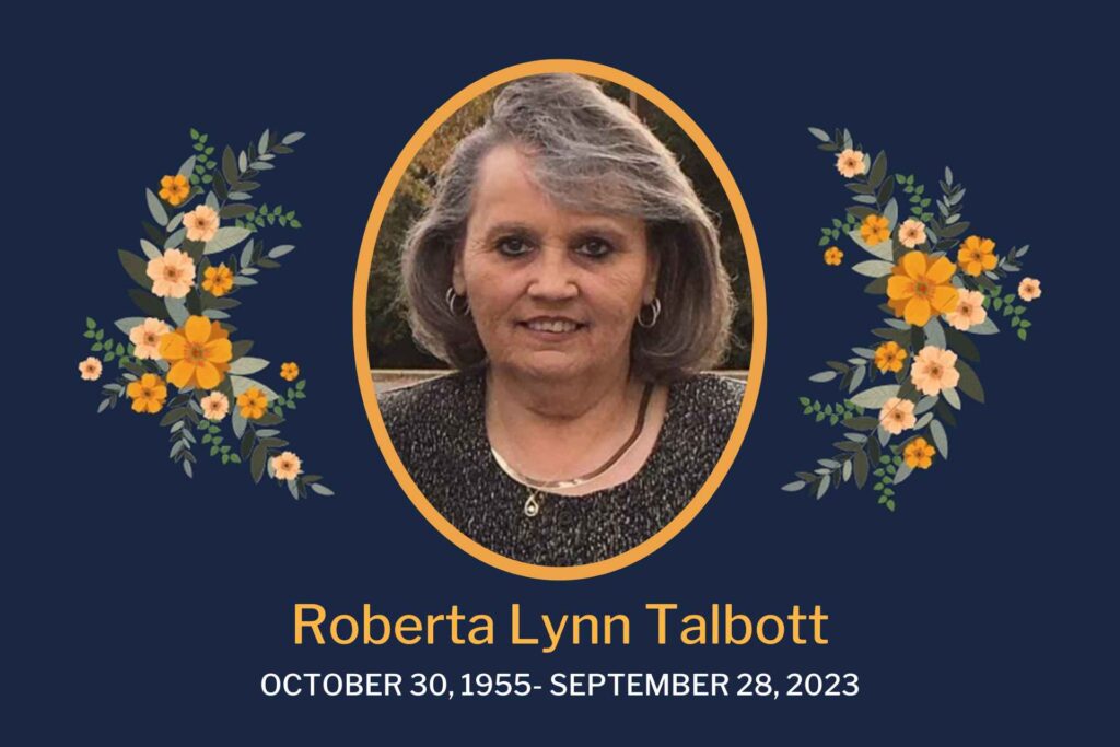 Roberta Lynn Talbott, age 67, of Buckhannon, WV, died Thursday, September 28, 2023, at J. W. Ruby Memorial Hospital in Morgantown, WV.