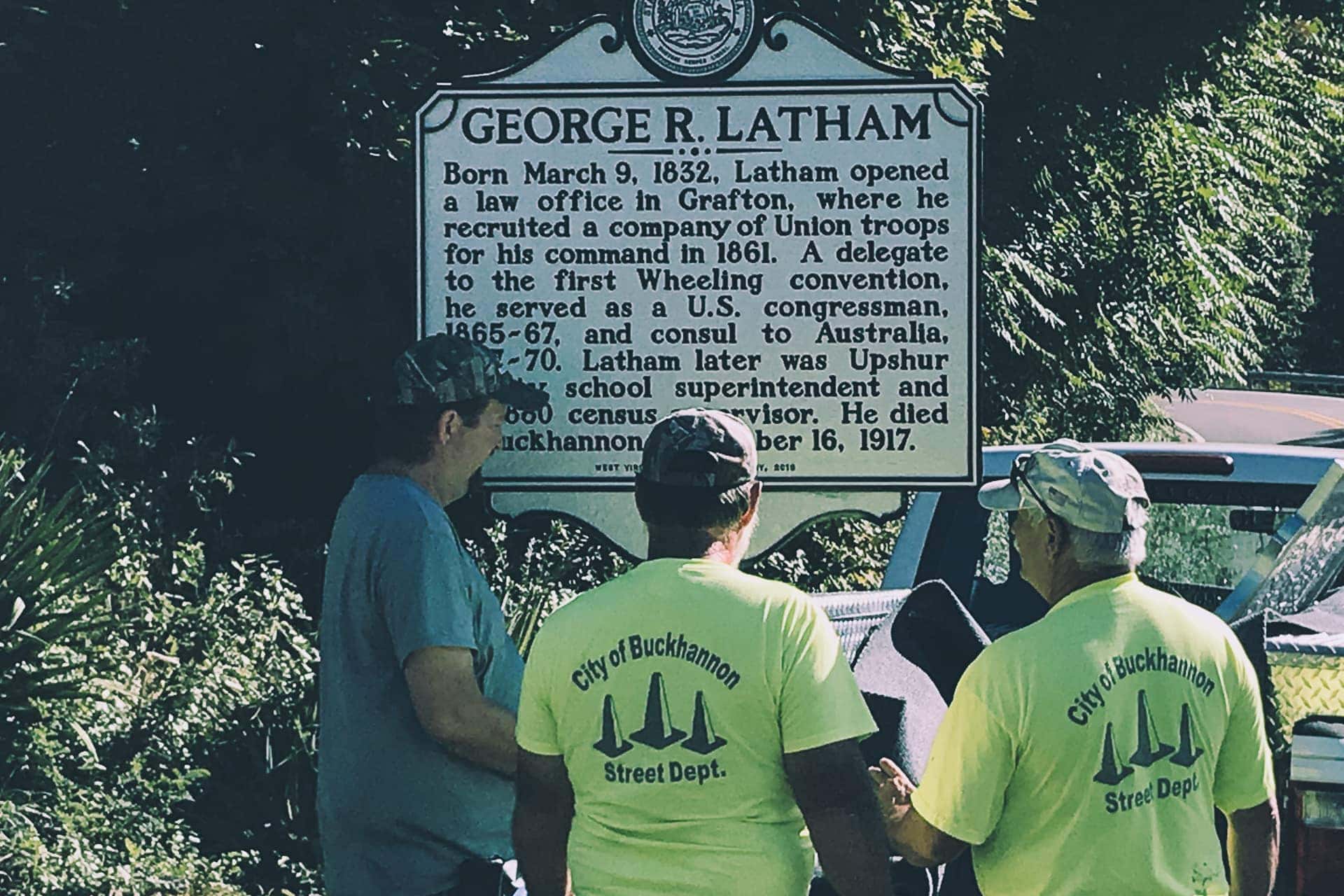 According to Matthew McGrew, Coordinator of the Historical Marker Program, “The first highway markers were erected in 1937. Since then, this well-known program has seen the installation and maintenance of over 1000 historical markers. The new markers commemorating George R. Latham and Daniel D.T. Farnsworth were funded in part by a grant to erect 160 new highway markers that addressed topics and individuals related to West Virginia statehood and the Civil War. The Archives & History section of the West Virginia Department of Arts, Culture, and History gratefully acknowledges the efforts of the Division of Highways, the City of Buckhannon, and the Upshur County Historical Society in placing these two new markers.”