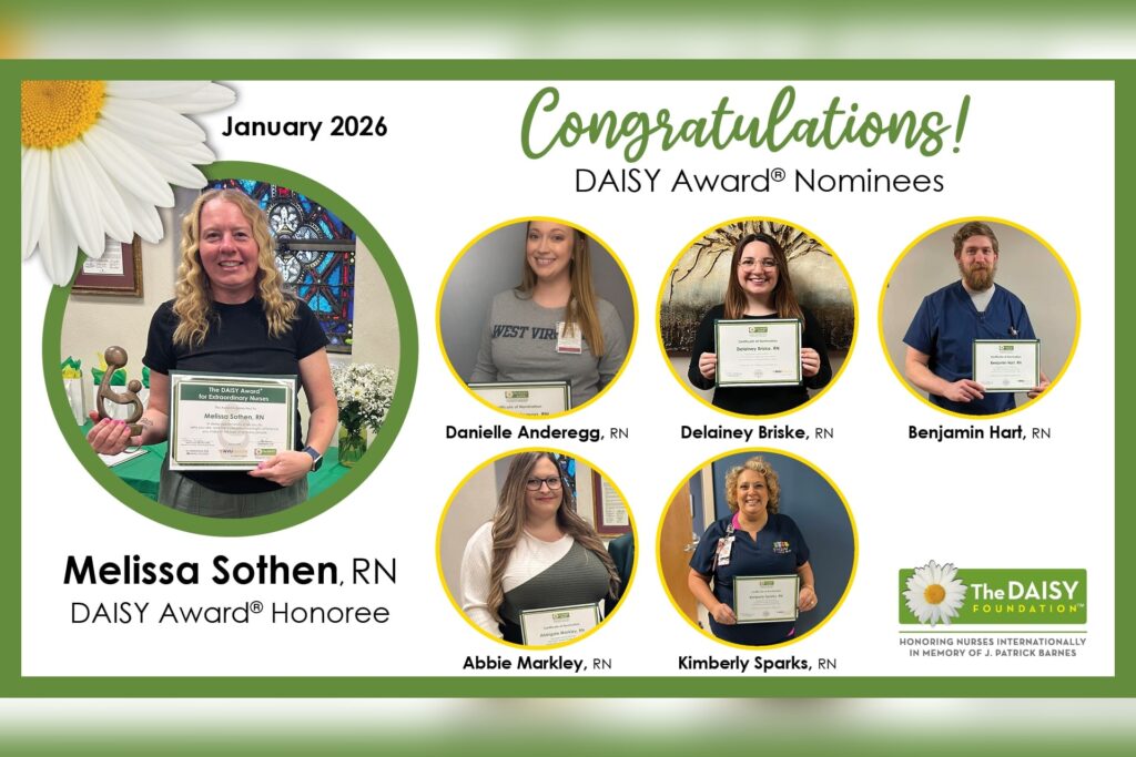 WVU Medicine St. Joseph’s Hospital has named Melissa Sothen, RN, as the recipient of The DAISY Award for Extraordinary Nurses, recognizing her compassionate care, clinical excellence and meaningful impact on patients and families.