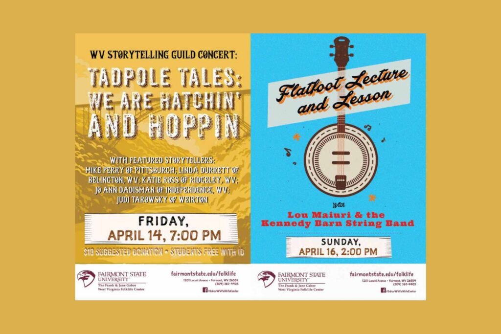 The West Virginia Storytelling Guild presents their spring concert at the Folklife Center on Friday, April 14 at 7 p.m. It is titled “Tadpole Tales: We are Hatchin’ and Hoppin.’”
