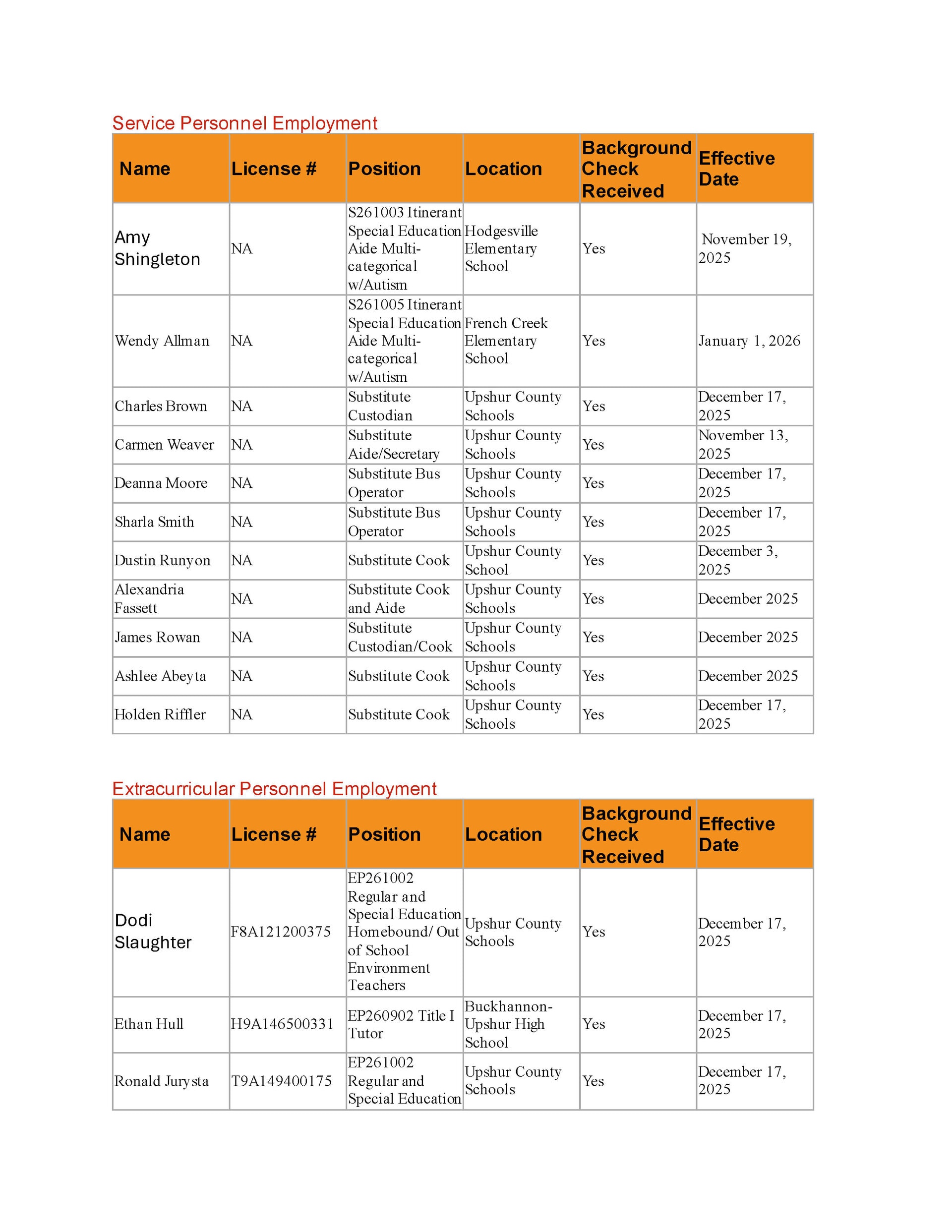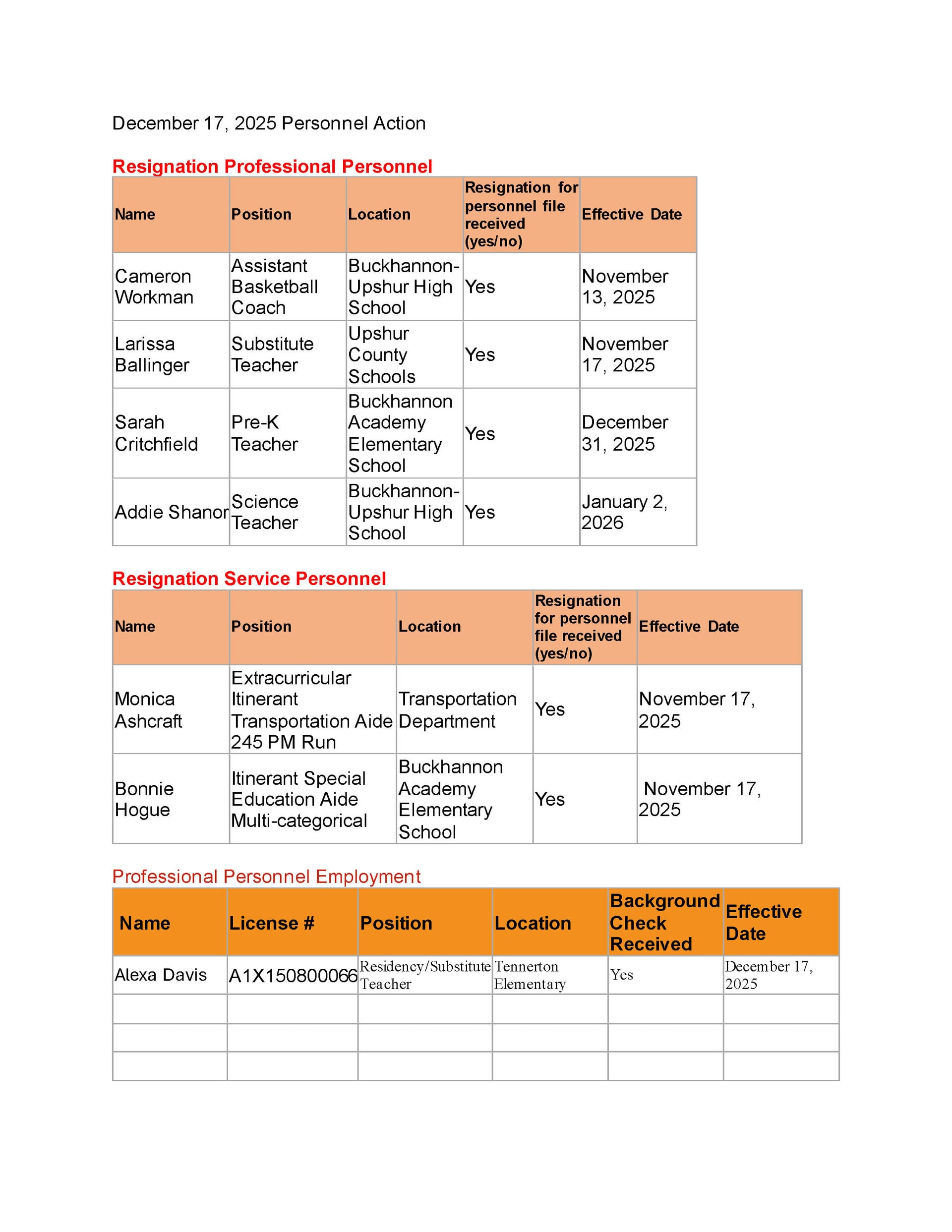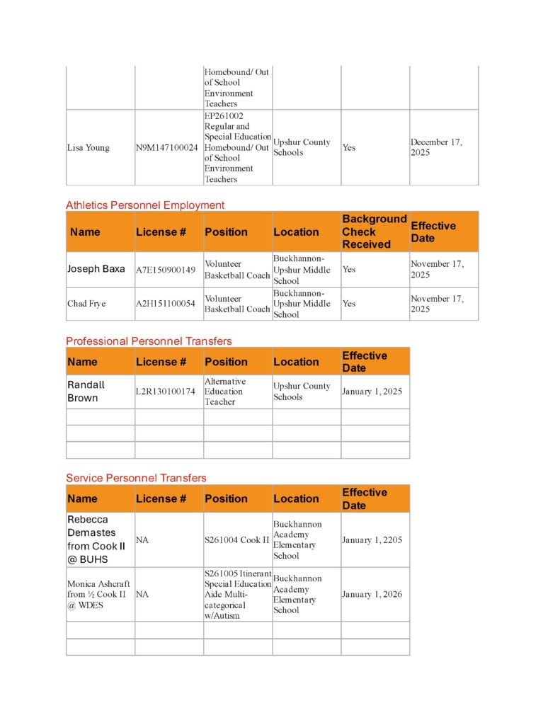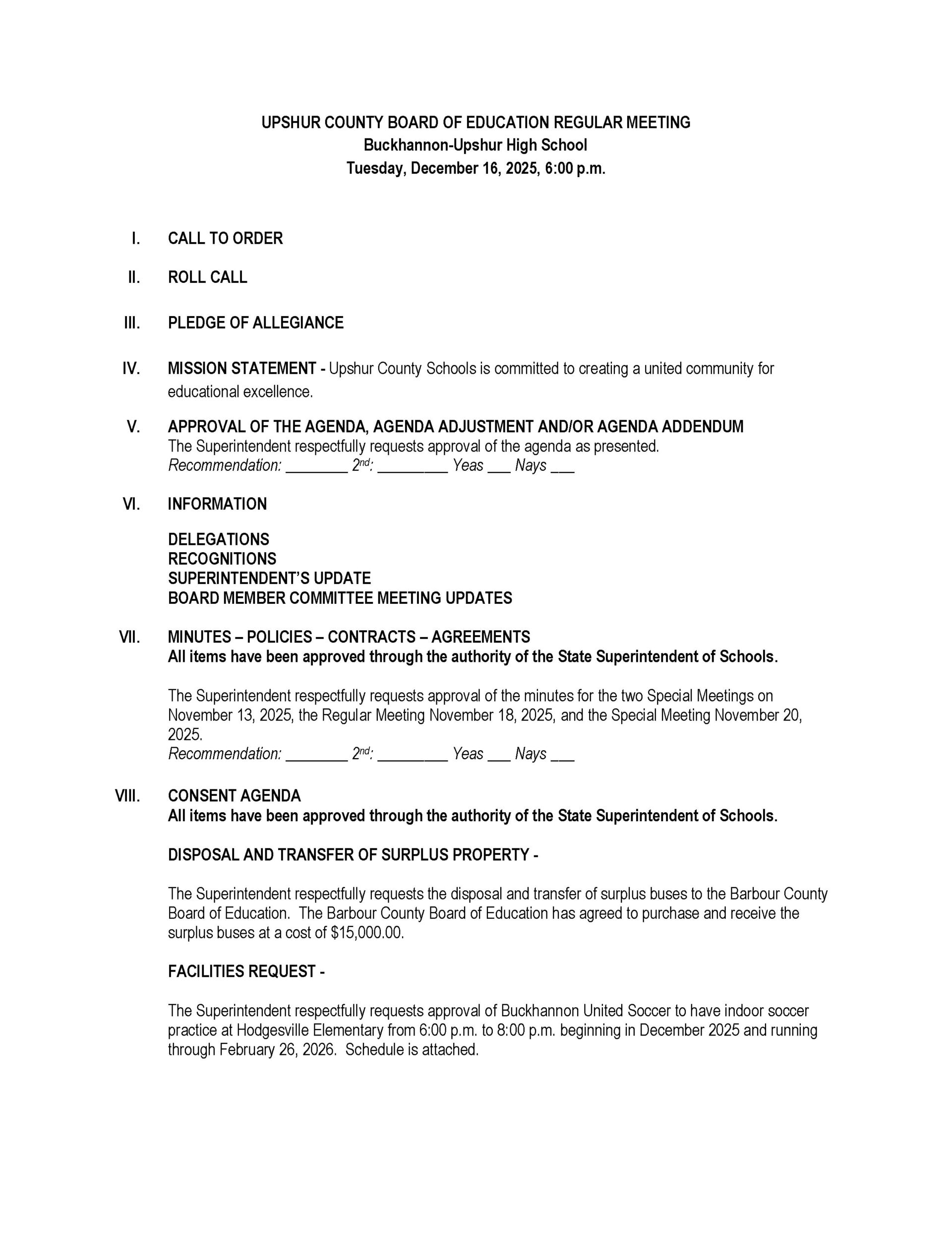 Upshur County Board of Education Agenda: December 16, 2025