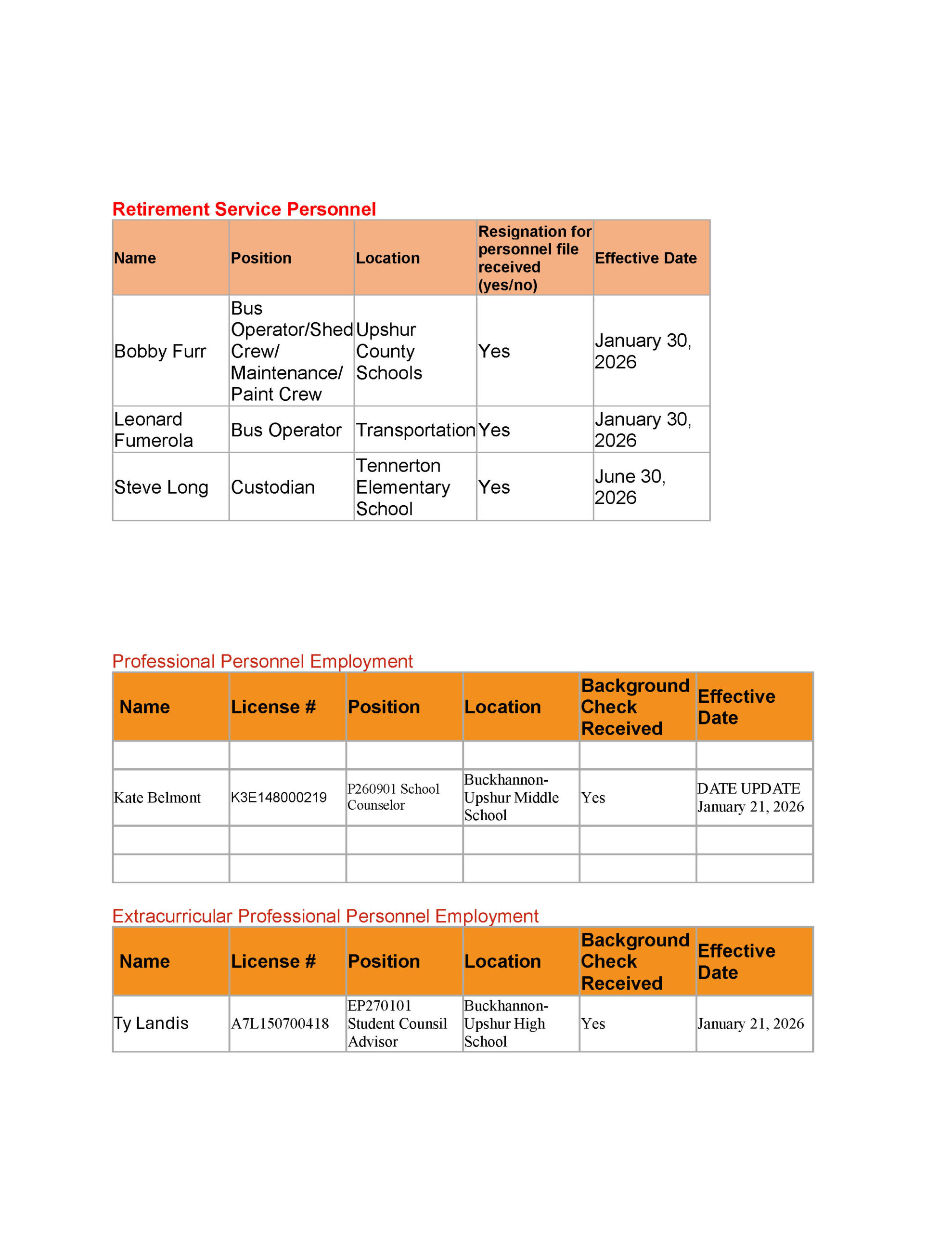 Here is the agenda for the Upshur County Board of Education meeting scheduled for February 3, 2026.