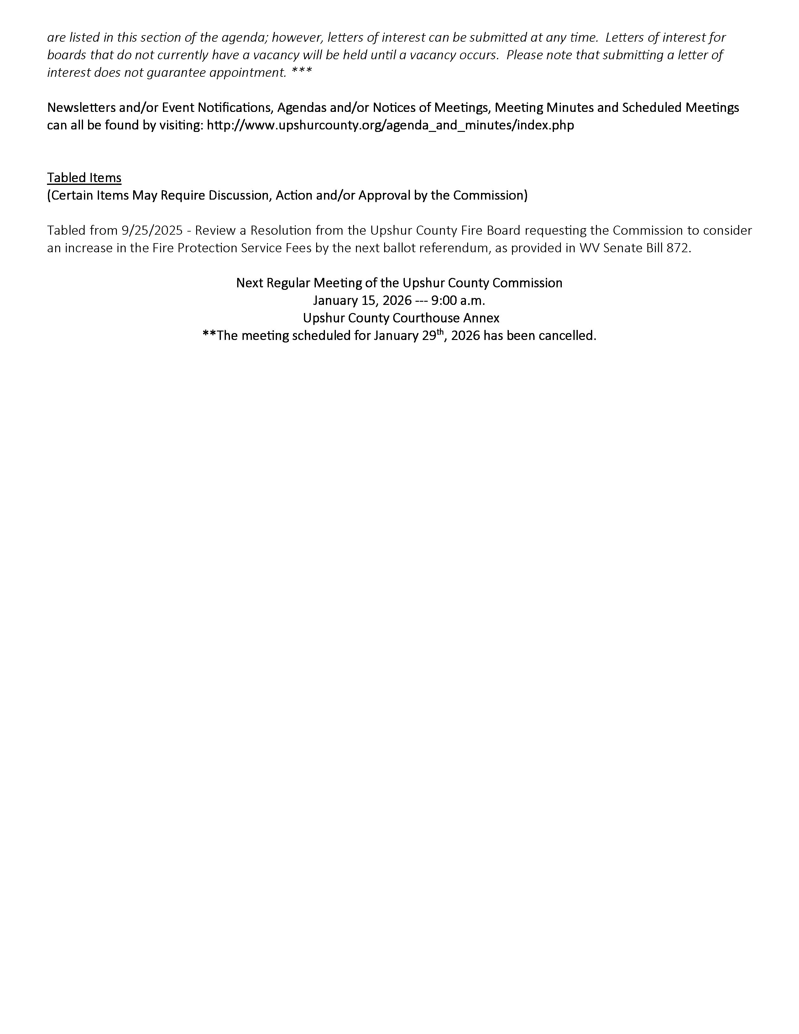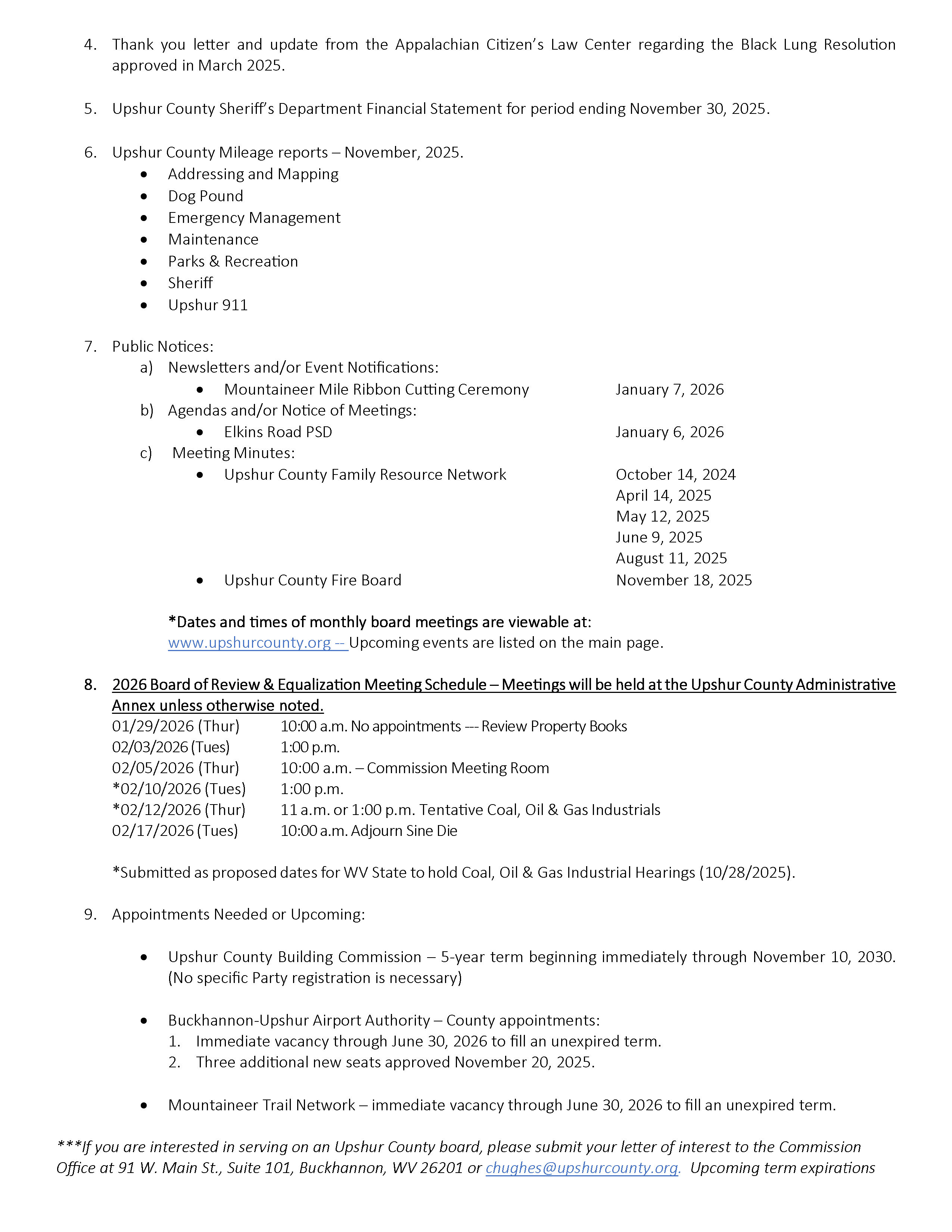 Upshur County Commission Agenda: January 8, 2026