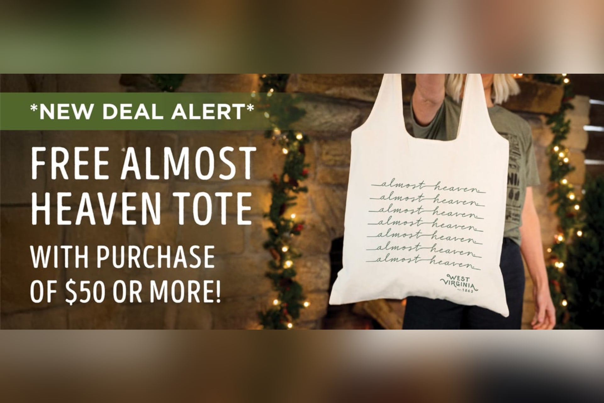 West Virginia State Parks officials announced a special holiday promotion that gives shoppers a free Almost Heaven tote when they purchase $50 or more at shopwvstateparks.com.