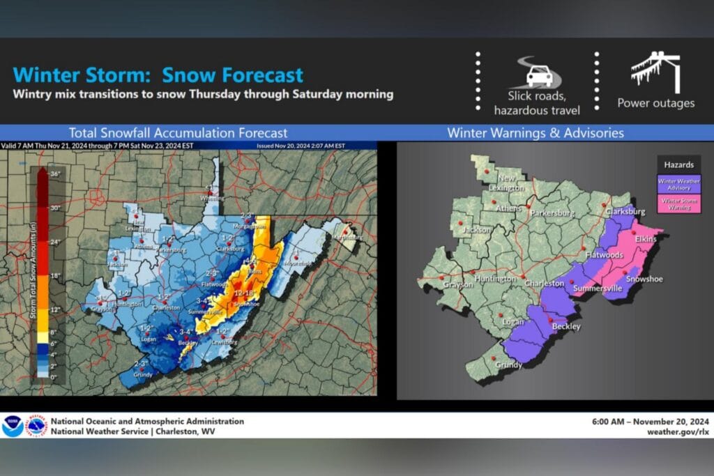The first winter storm system of the year is set to impact portions of West Virginia starting Thursday morning, bringing accumulating snow and strong winds that could create hazardous travel conditions through the weekend.